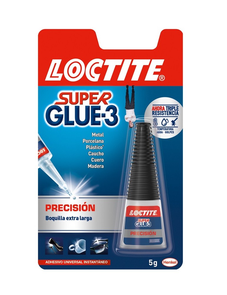 Adhesivo instántaneo base cianocrilato con boquilla extra larga para una mayor precisión. 5 g.
