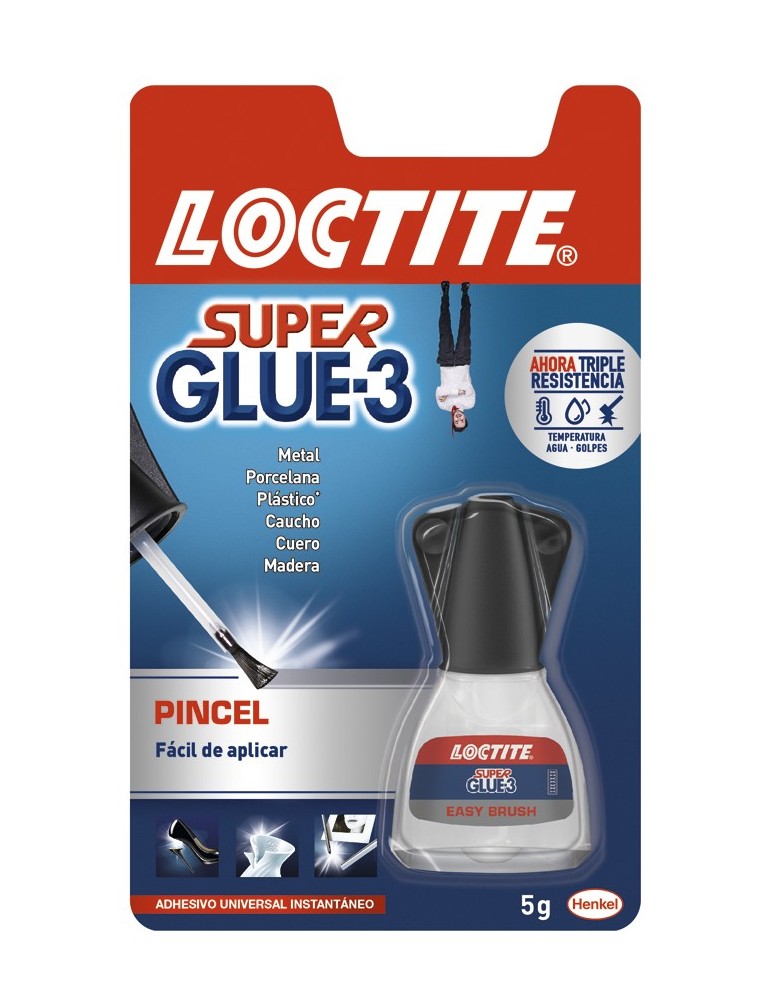Adhesivo universal instantáneo, máxima fuerza de unión en pocos segundos, resistente al agua y de fácil aplicación con pincel.