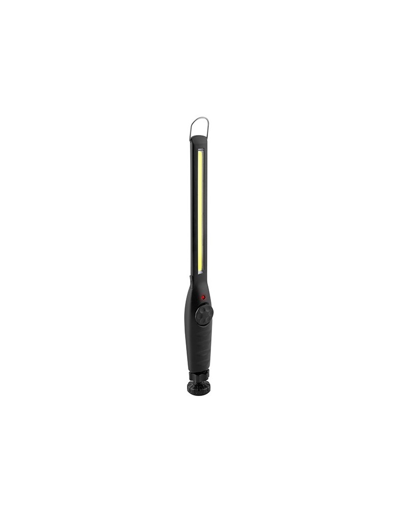 De alta potencia. Cuerpo en PC negro. Recargable, batería de litio. Regulador de intensidad giratorio. Indicador de carga y cable de carga Micro USB incluido. Gancho superior para colgar + base imantada orientable. 5 W.