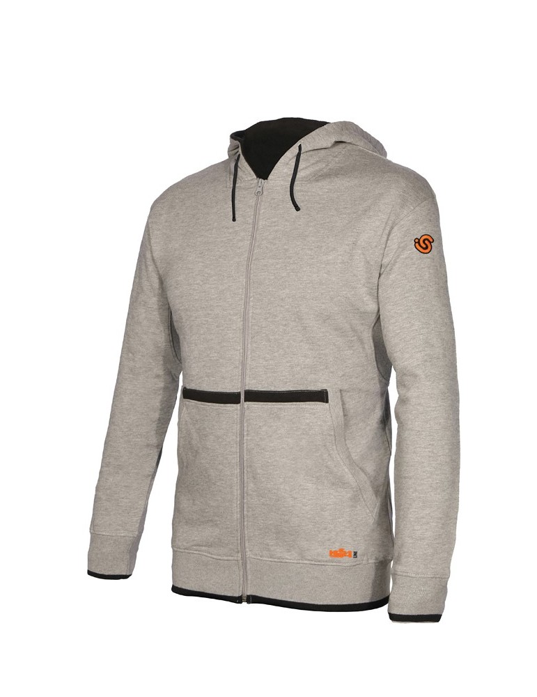 Composición: 65% algodón ? 35% poliéster. 315 gr/m2. Tallas: S-M-L-XL-XXL. Colores: gris con inserciones negras y azul con inserciones grises.