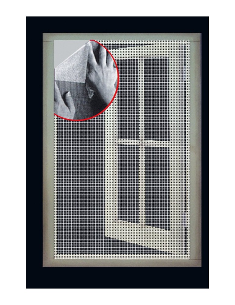 Mosquitera de fijación al marco de la ventana o puerta mediante cinta de velcro adhesiva, rápida y sencilla de colocar. Blanca o negra. 130 x 150 cm.