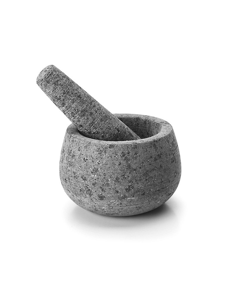 Fabricado en granito de calidad PREMIUM. Interior no poroso, permite extraer los aceites naturales de la hiervas y especias. 12 x 8 cm.