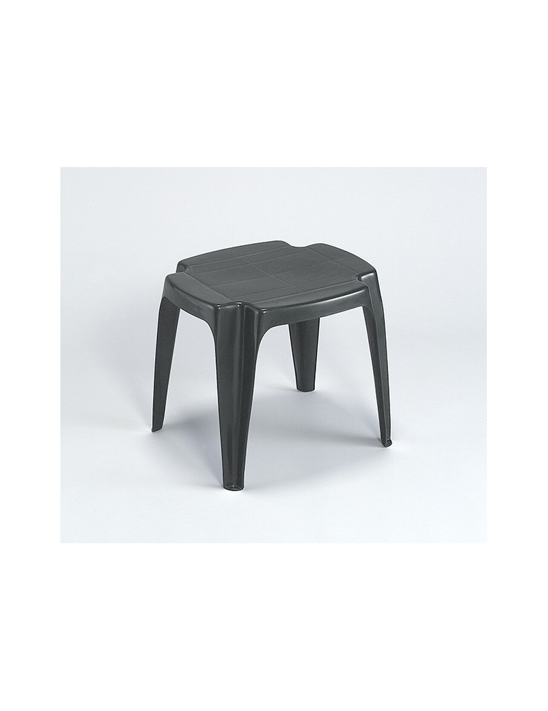 En polipropileno. Ideal como complemento para tumbonas, sillones relax o mesita de apoyo. Medidas 42 x 37 x 38 cm. Colores lima o antracita