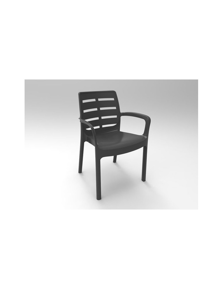 Apilable en polipropileno color antracita. Respaldo con lamas, el acabado de las lamas imita las vetas de la madera. 61 x 56 x 82 cm.